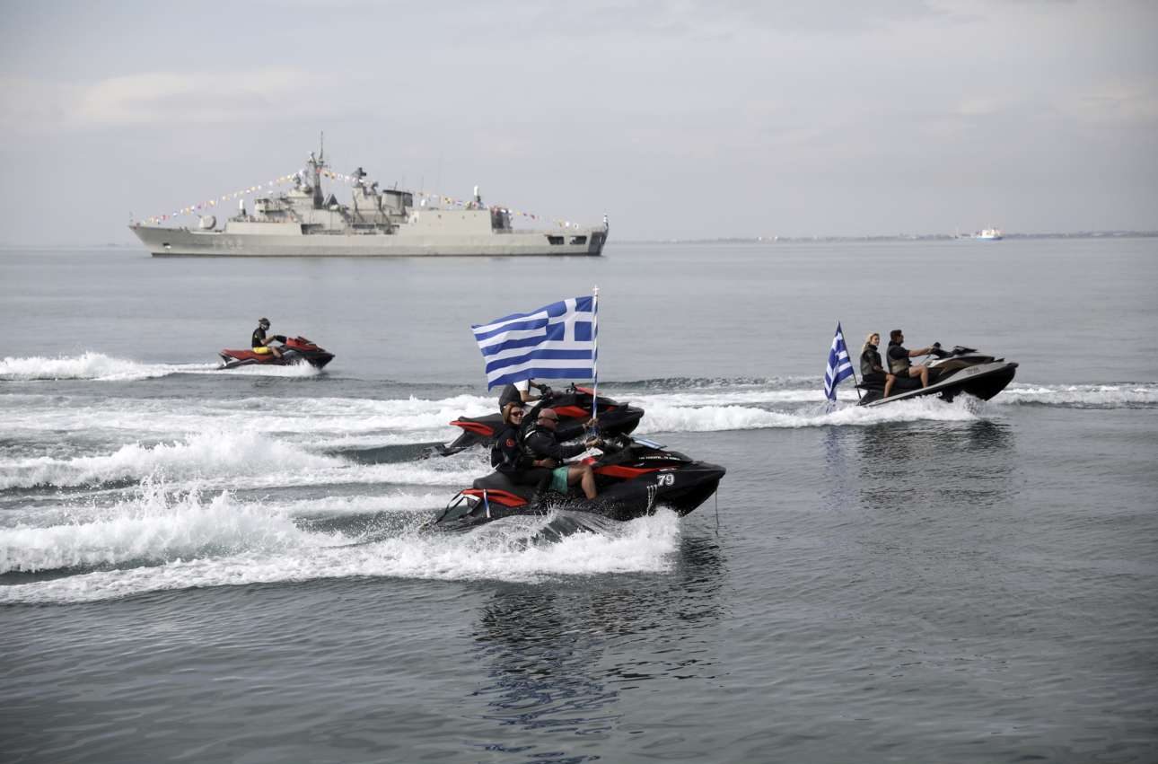 Στο λιμάνι ήταν αγκυροβολημένη και σημαιοστολισμένη η φρεγάτα «Υδρα» του Πολεμικού Ναυτικού