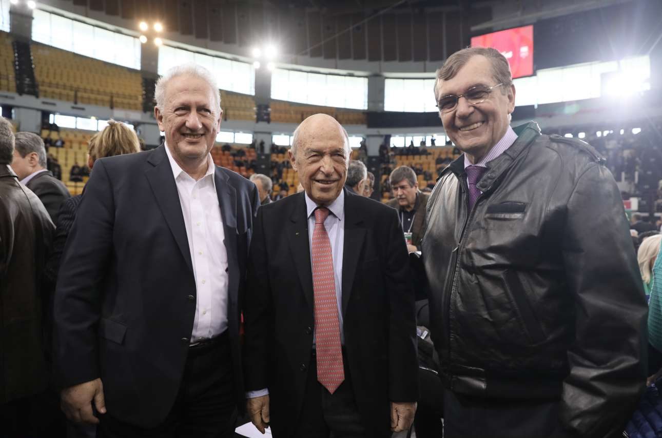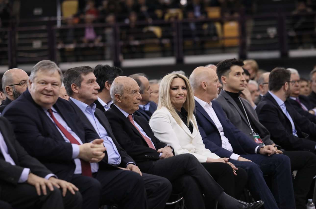 Η πρόεδρος Φώφη Γεννηματά και οι τρεις πρώην πρόεδροι (Βενιζέλος, Σημίτης, Παπανδρέου) στην πρώτη γραμμή των συνέδρων. Μαζί τους ο δήμαρχος της Αθήνας Γιώργος Καμίνηςθ