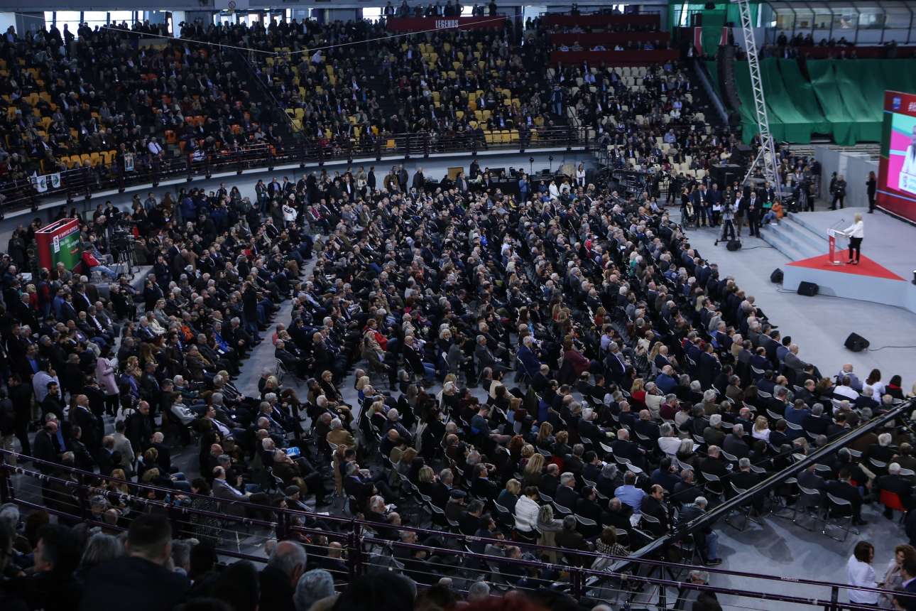 Μια άποψη του χώρου όπου διεξάγεται το συνέδριο ενώ στο βήμα μόλις διακρίνεται η Φώφη Γεννηματά (δεξιά)