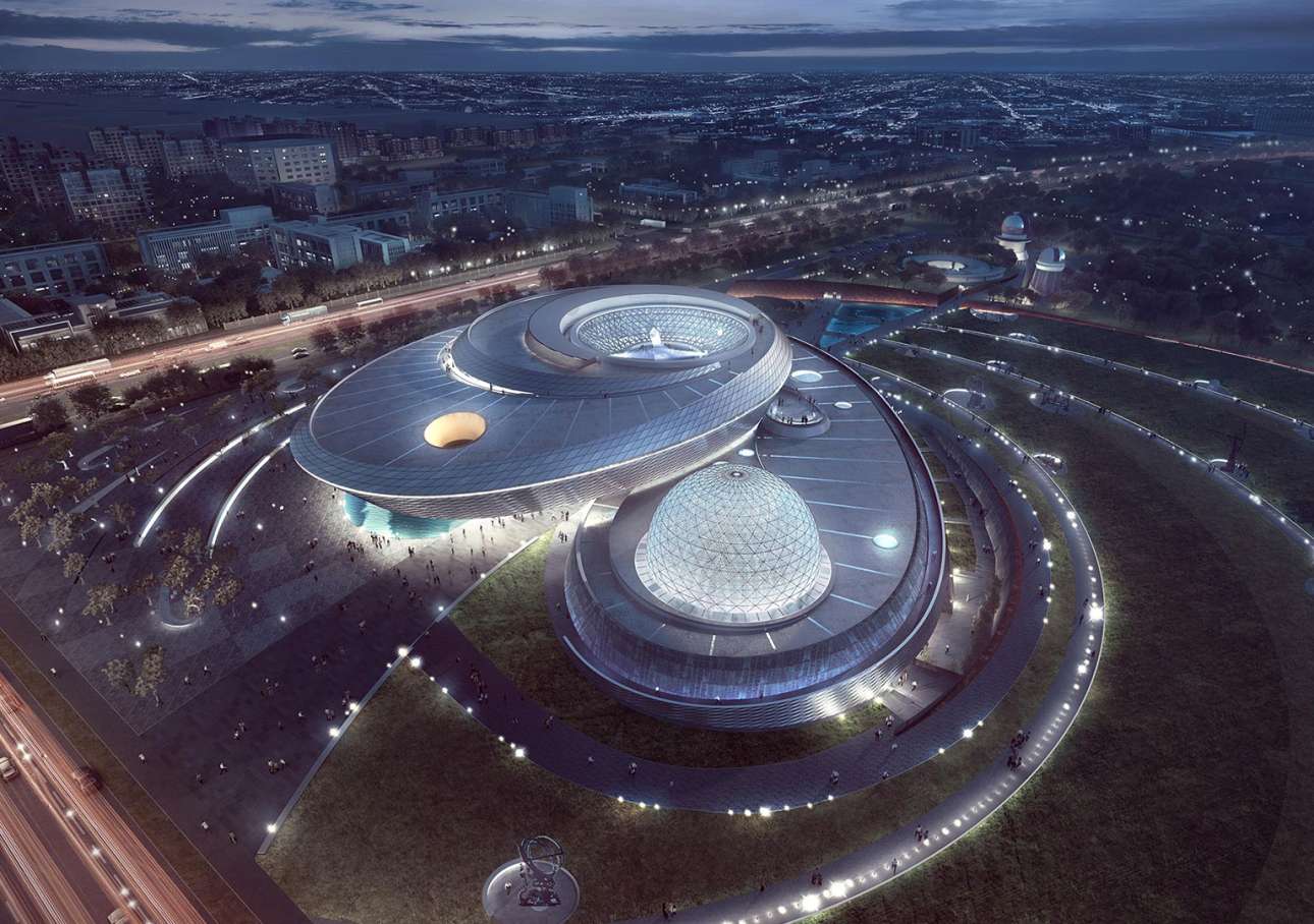 Τα στρογγυλά κτίρια του Μουσείου Αστρονομίας της Σαγκάης έχουν σχεδιαστεί έτσι ώστε να μιμούνται τα αστέρια και τους πλανήτες, ενώ ένα λαμπερό «μάτι» στην είσοδο παρακολουθεί την κίνηση του Ηλιου