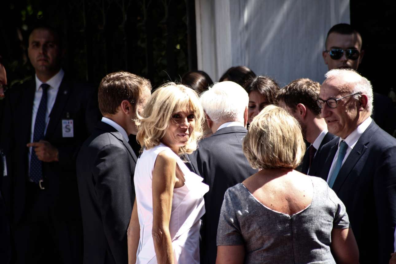 Τα κλεφτά βλέμματα της κυρίας Μακρόν στους φωτογράφους. Η πρώτη κυρία της Γαλλίας έδωσε ξεχωριστό τόνο στην επίσκεψη του Εμανουέλ Μακρόν στην Ελλάδα