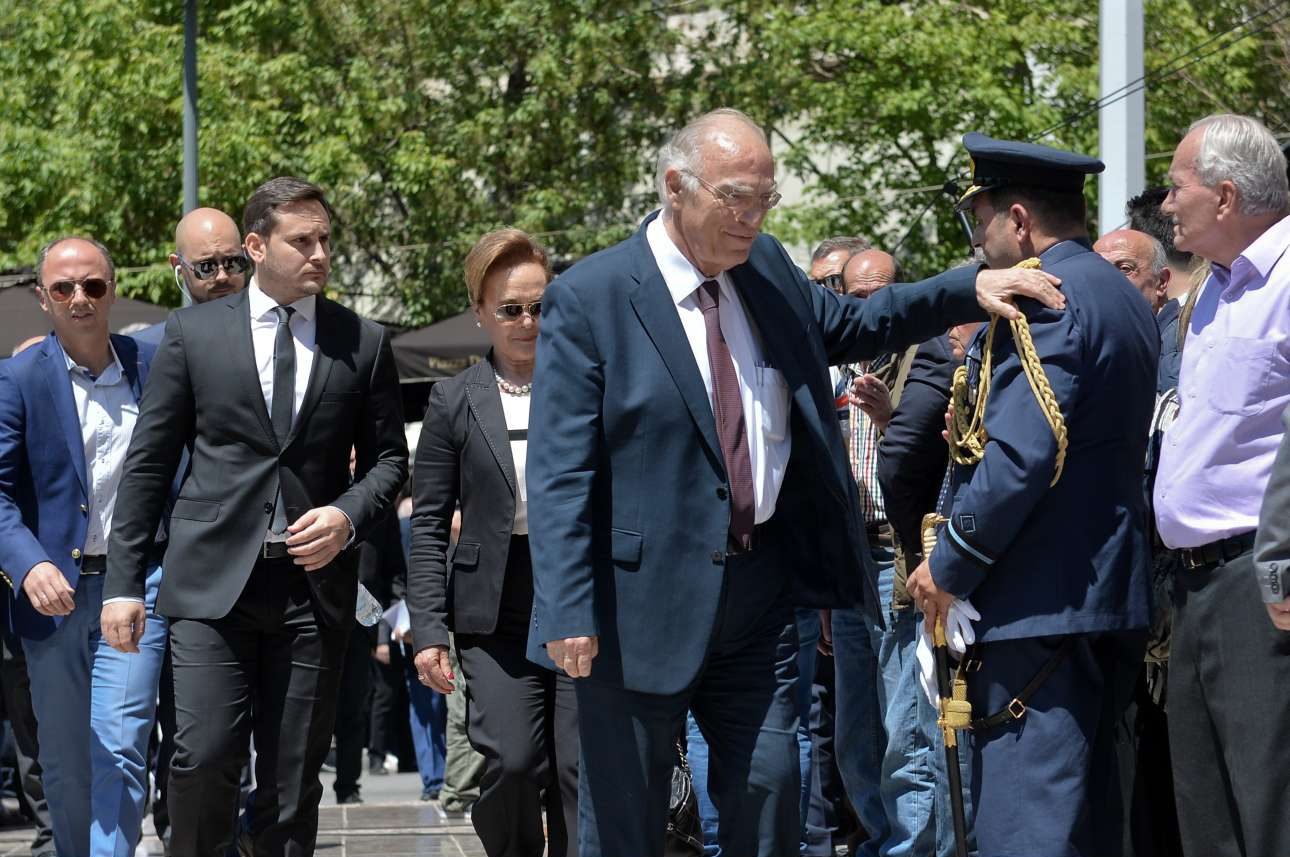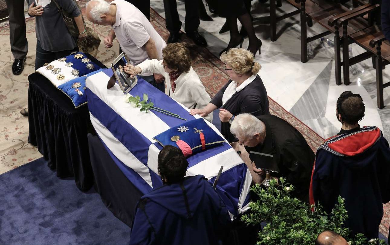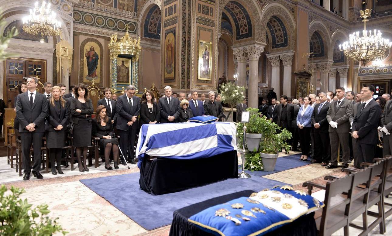 Πλήθος κόσμου έσπευσε από νωρίς το πρωί στη Μητρόπολη Αθηνών για να αποχαιρετήσει τον πρώην Πρωθυπουργό καθώς η σορός του τέθηκε σε λαϊκό προσκύνημα. Σκεπασμένο με την ελληνική σημαία το φέρετρο. Παρούσα από τις 7.00 π.μ. η οικογένεια του εκλιπόντος