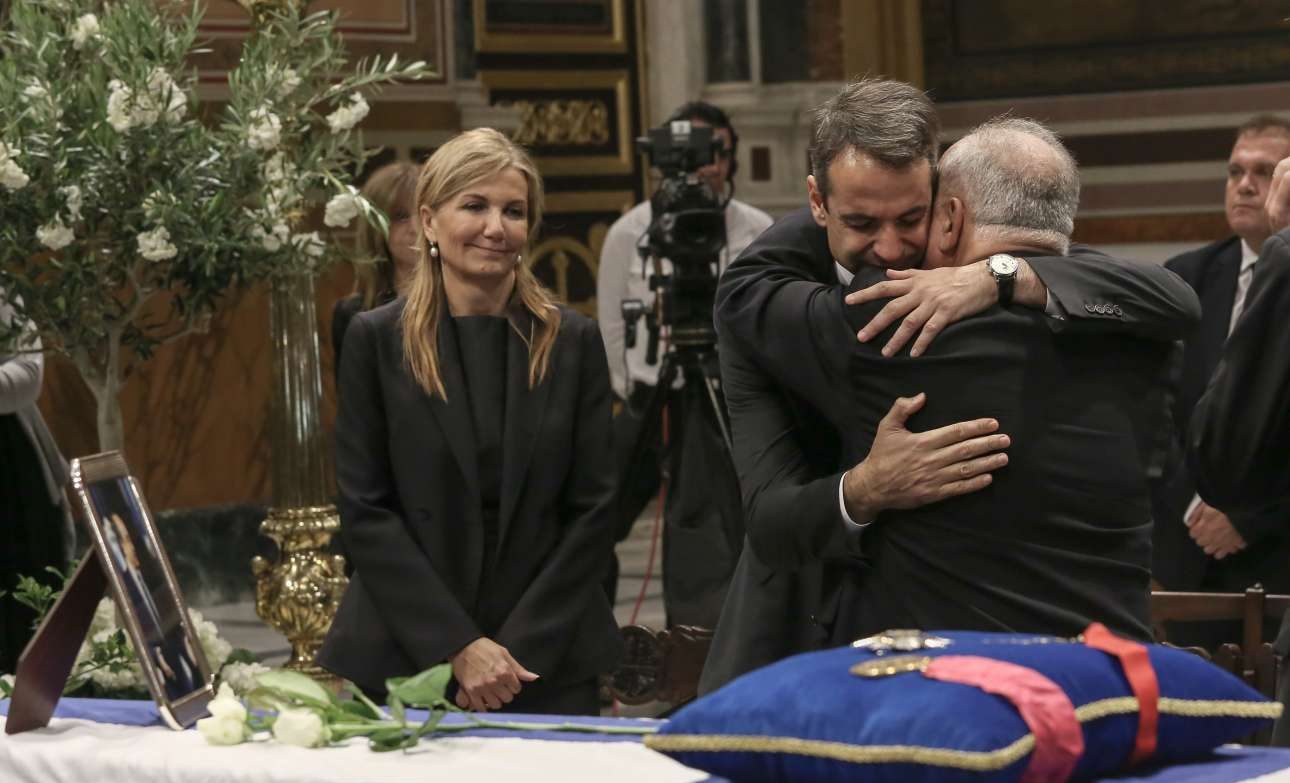 Η οικογένεια υποδέχεται τη σορό του Κωνσταντίνου Μητσοτάκη στη Μητρόπολη Αθηνών