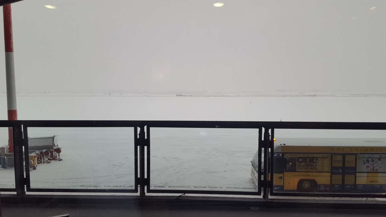 H πίστα του αεροδρομίου «Μακεδονία». Πολλές πτήσεις προς Θεσσαλονίκης οδηγήθηκαν προς το «Ελ. Βενιζέλος» της Αθήνας