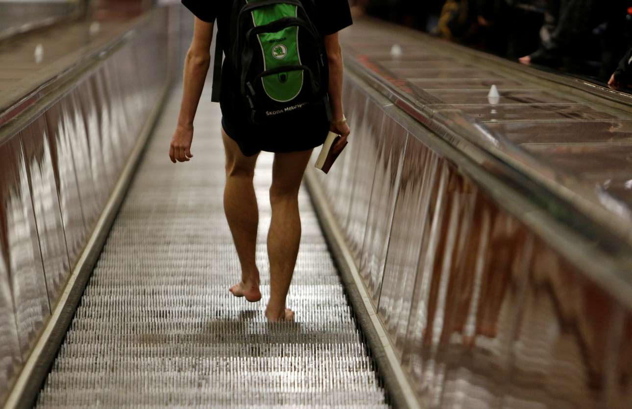 Η ετήσια «βόλτα χωρίς παντελόνι» με το μετρό που πραγματοποιείται κάθε χρόνο σε πολλές ευρωπαϊκές και αμερικανικές πόλεις έχει εξελιχθεί σε πολυαγαπημένη παράδοση. Ετσι, για ακόμη μία χρονιά, άνδρες και γυναίκες έβγαλαν τα παντελόνια τους και κατέβηκαν περιχαρείς στα μετρό της Νέας Υόρκης, του Βερολίνου της Πράγας και άλλων πρωτευουσών ανά την υφήλιο