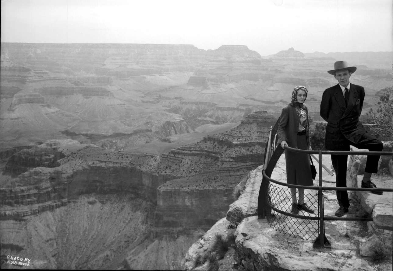 Ο βρετανός πολιτικός Λόρδος Χάλιφαξ και η σύζυγος του ποζάρουν για μία αναμνηστική φωτογραφία στο Mather Point, στις 13 Μαΐου του 1944