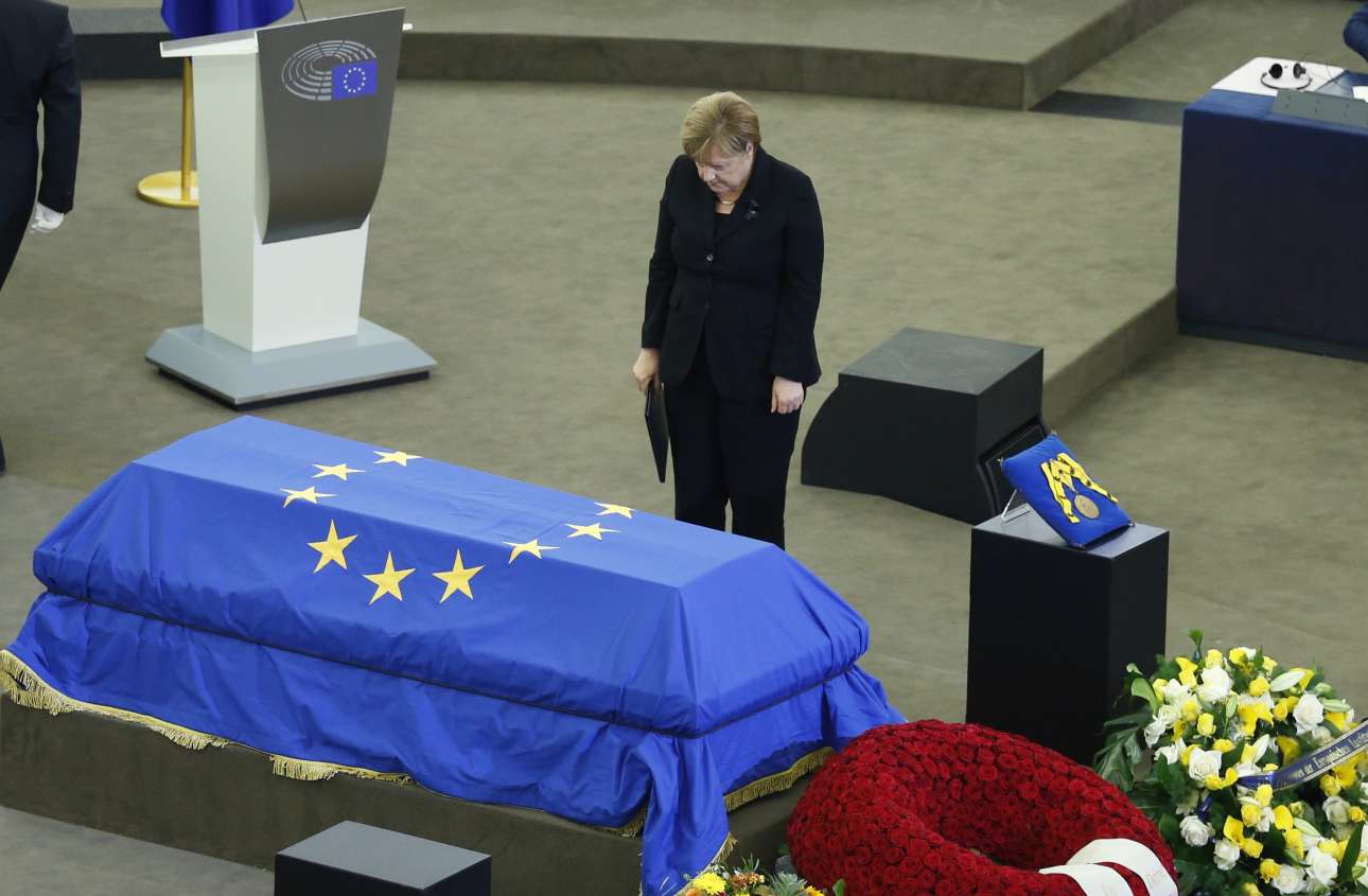 Σε μια λιτή τελετή στο Ευρωπαϊκό Κοινοβούλιο στο Στρασβούργο, πολιτικοί φίλοι και αντίπαλοι, πολιτικά τέκνα και συνεχιστές, αποχαιρέτησαν τον πρώην γερμανό καγκελάριο Χέλμουτ Κολ, αφήνοντας στην άκρη αντιπαραθέσεις γύρω από το πρόσωπό του