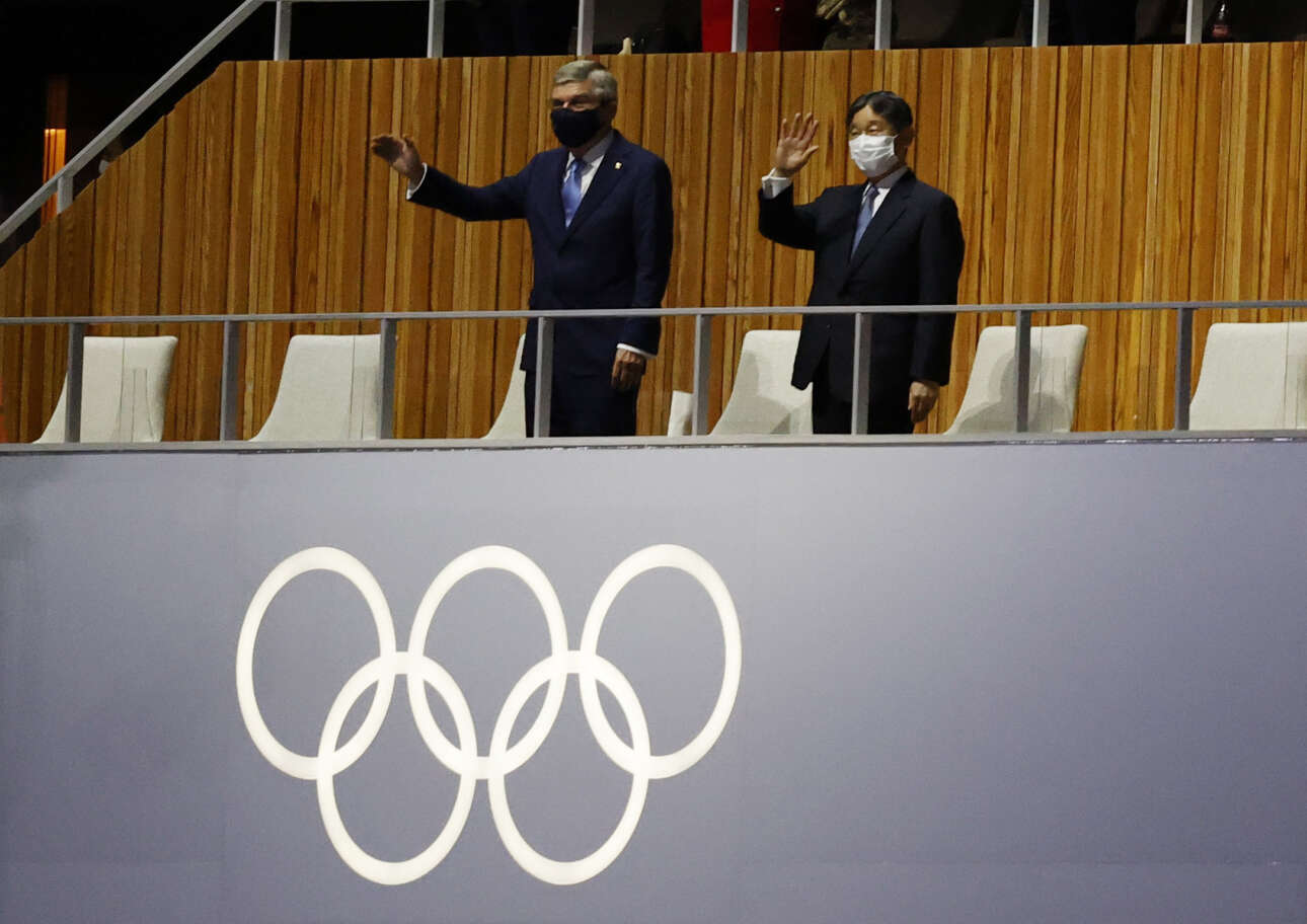 Ο πρόεδρος της ΔΟΕ Τόμας Μπαχ με τον αυτοκράτορα της Ιαπωνίας Ναρουχίτο χαιρετούν τις αποστολές
