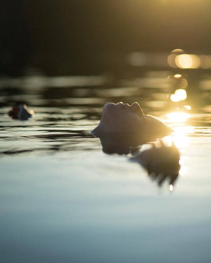 «Γαλήνη: η εικονιζόμενη γυναίκα δείχνει ευτυχισμένη που χαλαρώνει σε μια πισίνα στον Καναδά»