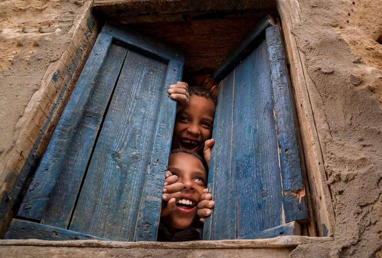 Αδέλφια παρακολουθούν με ενθουσιασμό τους εορτασμούς του φεστιβάλ Siyaha στην όαση της Σίβα, στην Αίγυπτο
