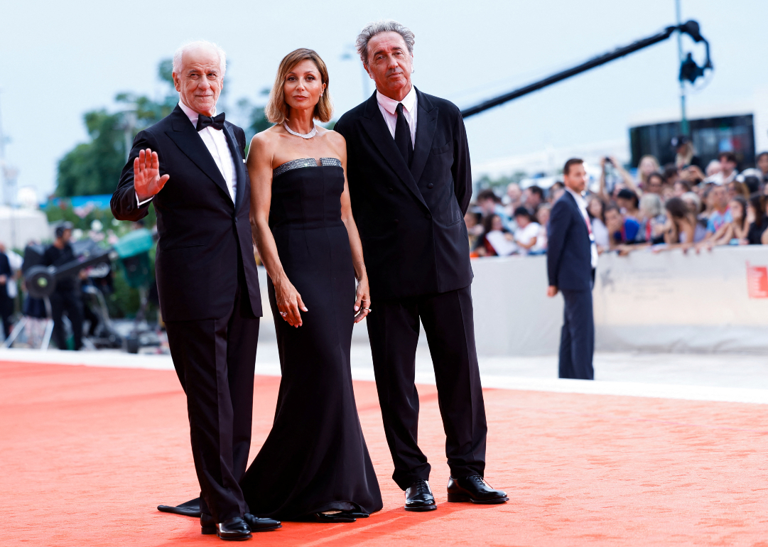 Ο διάσημος ιταλός σκηνοθέτης Πάολο Σορεντίνο ποζάρει με τους Τόνι Σερβίλο και Αννα Φερτσέτι, πρωταγωνιστές της τελευταίας ταινίας του «La grazia», με την οποία άνοιξε φέτος το Φεστιβάλ Κινηματογράφου της Βενετίας