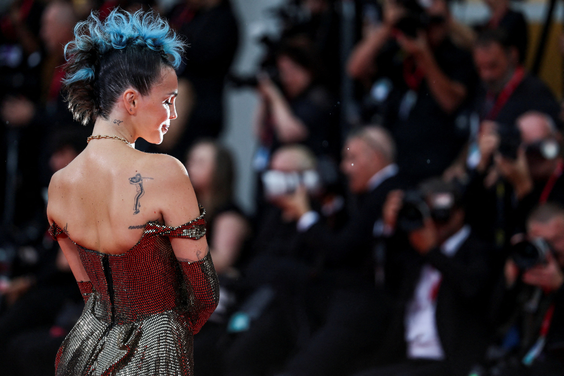 Η Rose Villain όπως είναι επαγγελματικά γνωστή ιταλίδα ράπερ και τραγουδοποιός Ρόζα Λουίνι στο κόκκινο χαλί της τελετής έναρξης του Φεστιβάλ Κινηματογράφου της Βενετίας