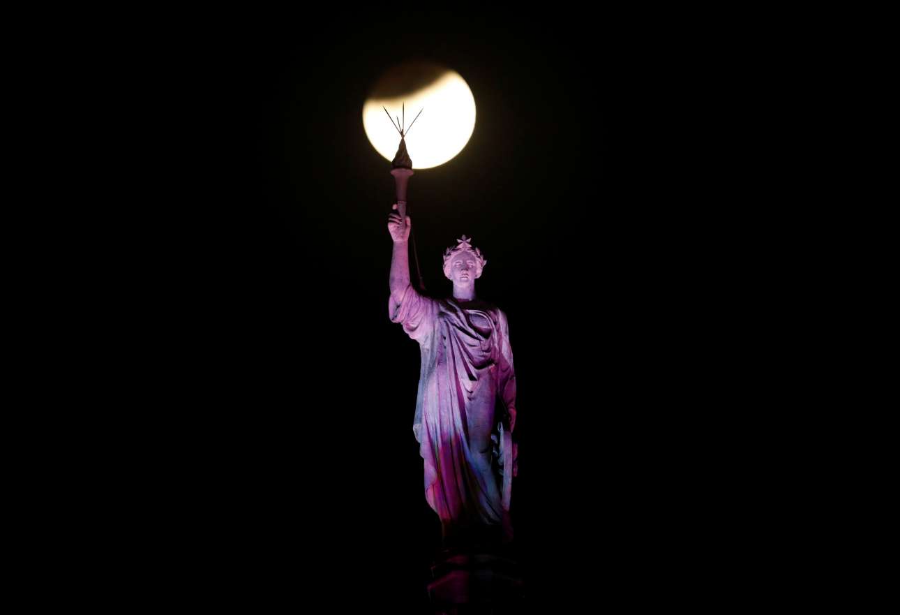 Τυχεροί οι επιβάτες του Στέιτεν Αϊλαντ φέρι στη Νέα Υόρκη που είχαν την ευκαιρία να απολαύσουν το μαγικό θέαμα από τη θάλασσα