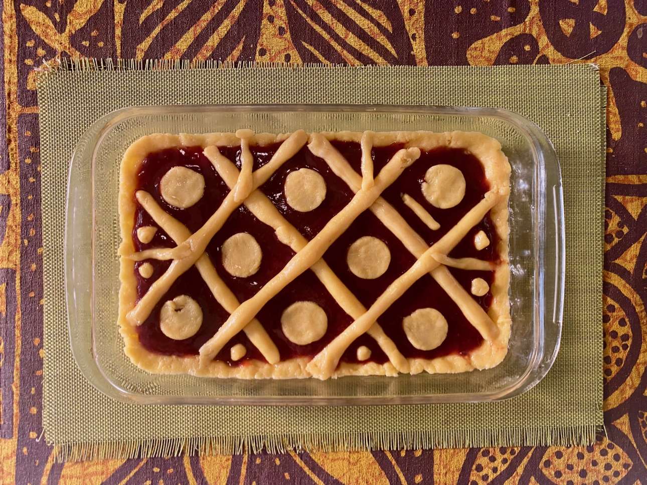 Ολα ξεκίνησαν από μια μαρμελάδα φράουλα που ήθελα να «ξεφορτωθώ». Οχι γιατί δεν ήταν νόστιμη. Κάθε άλλο, πεντανόστιμη ήταν και τα αρώματά της τα είχε, ότι πρέπει δηλαδή για μια τέτοια τάρτα. Αλλά την έφτιαξα μια μέρα που είχα πολλά νεύρα. Ξέσπασα λοιπόν στη μαρμελάδα και για να καλμάρω τη χτύπησα μέχρι τελικής πτώσεως με το beamer (ράβδο μπλέντερ) μέχρι που έγινε αλοιφή, ενώ εμένα μου αρέσει να διακρίνονται τα κομματάκια φρούτου στη μαρμελάδα μου. Μετά, δε, όταν την έβαλα στα βάζα, μου φάνηκε πολύ αραιή, οπότε την ξανάβρασα και έσφιξε κάπως, έχασε την επιθυμητή φρεσκάδα της. Τι κάνουμε τώρα; Pasta frolla, βεβαίως.