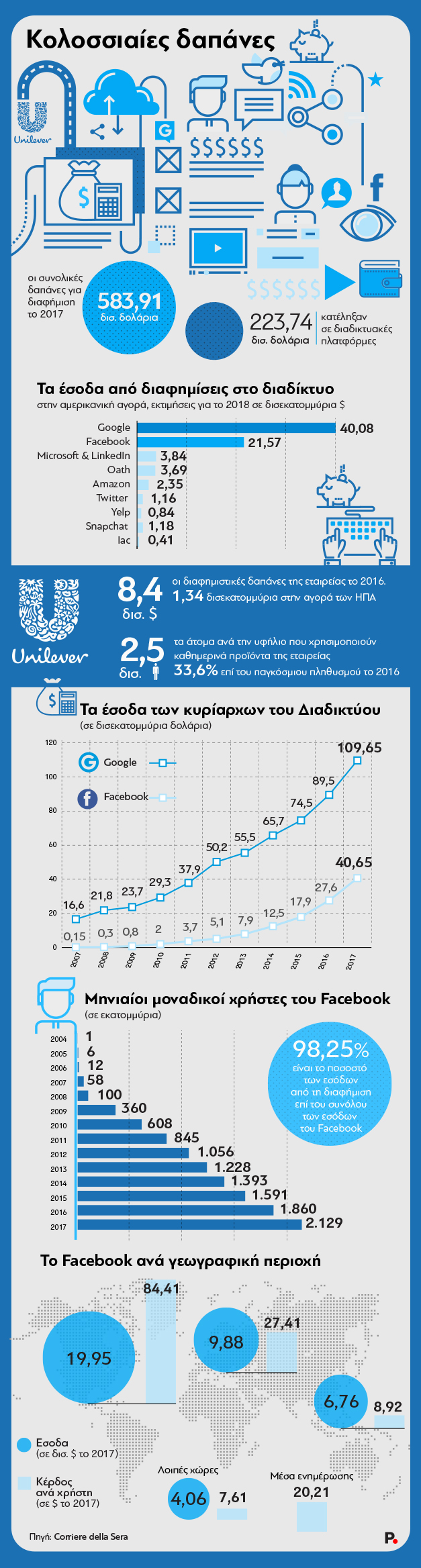 Η λιγότερο καλή είδηση έγκειται στο ότι ενδέχεται να κρίνει τελικά τι αποτελεί αλήθεια και τι ψέμα, τι ηθικό και τι ανήθικο, προσβλητικό ή μη, όχι κάποιος δημόσιος, διακρατικός φορέας αλλά μια ιδιωτική εταιρεία. Ενα δεύτερο ζήτημα που έθιξαν τα διεθνή ΜΜΕ μετά την άκρως επιθετική κίνηση της αγγλο-ολλανδικής πολυεθνικής αφορά το κατά πόσο η Unilever θα μπορέσει, εάν τελικά αναγκαστεί, να πραγματοποιήσει την απειλή της. Γιατί η Google (και το δικό της YouTube) και το Facebook μαζί, ελέγχουν τουλάχιστον το 50% της παγκόσμιας αγοράς ψηφιακής διαφήμισης και σχεδόν τα 2/3 της αντίστοιχης αμερικανικής. Και δίχως τους κράχτες της Σίλικον Βάλεϊ, μια εταιρεία που εμπορεύεται ανά την υφήλιο μια ευρεία γκάμα προϊόντων διατροφής, οικιακής χρήσης και προσωπικής υγιεινής, διακινδυνεύει να χάσει πολλά.