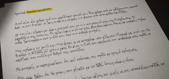 Το «Γράμμα στον νεότερο εαυτό μου», με πρωταγωνιστή τον Aντώνη Νικοπολίδη, είναι το δεύτερο από τα 6έξι αφιερωματικά βίντεο που ετοίμασε ο ΟΠΑΠ για την 20η επέτειο από το έπος της Πορτογαλίας. Eξι ζωντανοί θρύλοι του 2004, που σφράγισαν τη νικηφόρα πορεία της Εθνικής μας Ομάδας προς την κορυφή της Ευρώπης, γράφουν στον νεότερο εαυτό τους και μας παίρνουν μαζί τους σε ένα ταξίδι στον χρόνο γεμάτο έντονες αναμνήσεις και συναισθήματα.