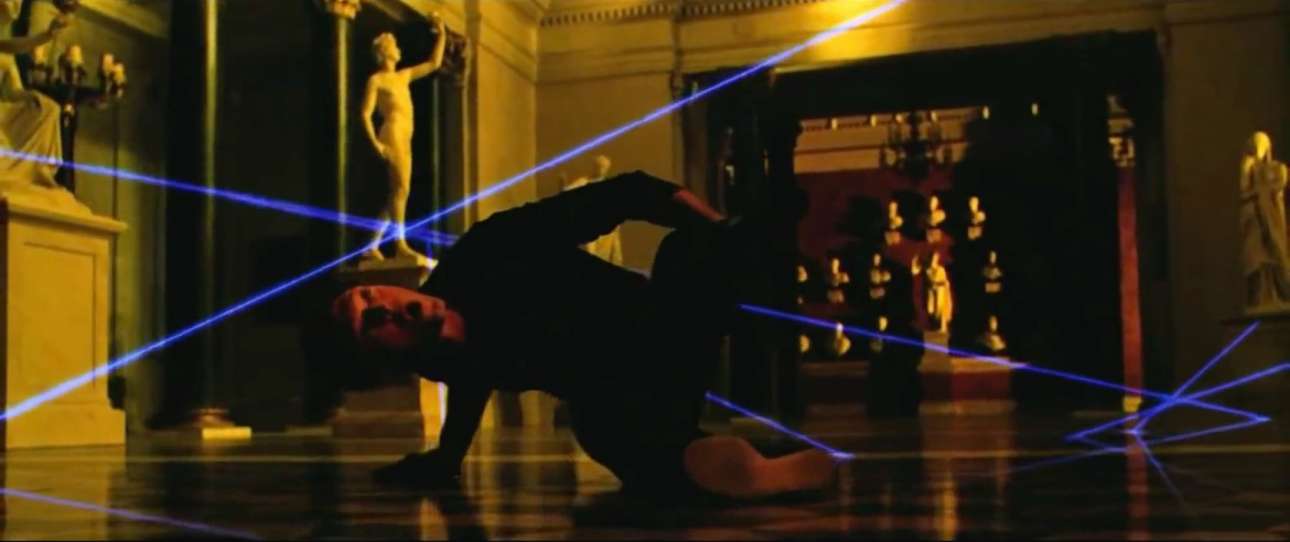 Εκτός των άλλων, λοιπόν, το φιλμ με τους πολλούς σταρ –Μπραντ Πιτ, Τζούλια Ρόμπερτς, Ματ Ντέιμον, Κάθριν Ζέτα Τζόουνς– έχει μείνει αξέχαστο και για την περίφημη σκηνή με τις ακτίνες λέιζερ, τις οποίες προσπαθεί να αποφύγει ο Κασέλ, φτάνοντας στον στόχο του.