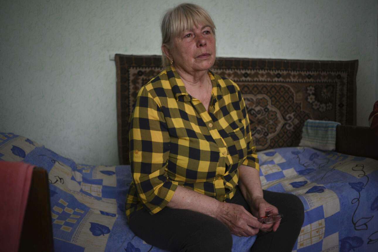 Η 69χρονη Νάντια Νικολάιβνα (κάτω) έφυγε τρέχοντας από το σπίτι της στο Ιρπίν, στις 9 Μαρτίου, κατά τη διάρκεια βομβαρδισμών και πυροβολισμών. «Θυμάμαι μόνο την ανάσα μου. Ανάμεσα σε μαύρα σύννεφα ξέφυγα τρέχοντας μέσα στο δάσος, ενώ τα σπίτια φλέγονταν», λέει σπάζοντας τον σιωπηλό σπαραγμό της. «Ετρεχα για ώρες. Το ξέρω καλά το δάσος, επειδή συνήθιζα να μαζεύω μανιτάρια. Διέσχισα 10 χλμ. και έφθασα σε ένα κοντινό χωριό. Εκεί συνάντησα τη φίλη μου και πήραμε μαζί το τρένο για το Τσερνοβτσί, μας λέει δακρυσμένη.