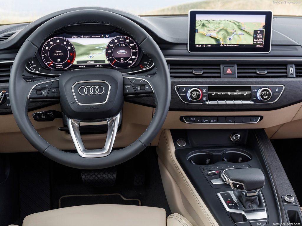 Αντίθετα με τις προσεκτικές παρεμβάσεις, που έγιναν στο εξωτερικό του αμαξώματος, οι ντιζάινερ της Audi λειτούργησαν ανατρεπτικά όσον αφορά στον σχεδιασμό του πίνακα οργάνων και γενικότερα του θαλάμου επιβατών. Η νέα εικόνα στο εσωτερικό του Αudi A4 πέμπτης γενιάς αποτελεί ένα κράμα σχεδιαστικών λεπτομερειών υψηλής αισθητικής και τεχνολογιών αιχμής. Η ποιότητα των υλικών, η τέλεια συναρμολόγηση και το προσεγμένο φινίρισμα επιβεβαιώνουν τη φήμη της Audi στον συγκεκριμένο τομέα, όπου η μάρκα από το Ινγκολσταντ λειτουργεί εδώ και χρόνια ως μέτρο σύγκρισης για τον ανταγωνισμό.