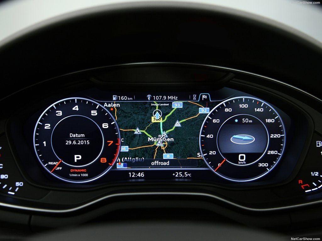 Στα χάιλαϊτ περιλαμβάνεται χωρίς αμφιβολία ο ψηφιακός πίνακας οργάνων Audi Virtual Cockpit, που πρωτογνωρίσαμε στο Audi TT και αλλάζει σχεδιασμό και περιεχόμενο με το πάτημα ενός μπουτόν. Υπάρχει επίσης η δυνατότητα ασύρματης φόρτισης του κινητού τηλεφώνου και η σύνδεση με το Ιντερνετ, ενώ το σύστημα πολυμέσων διαθέτει πλέον σταθερή και όχι αναδυόμενη οθόνη και λειτουργεί και με φωνητικές εντολές. Εντυπωσιακό είναι και το τζόιστικ που προβλέπεται στις εκδόσεις με αυτόματα σαζμάν, όπως η συγκεκριμένη της δοκιμής μας.