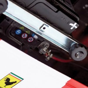 Πρόκειται για ένα καταπληκτικό μοντελάκι με δίχρονο κινητήρα 50 κ.εκ. της Piaggio, που αποδίδει περίπου 4,5 ίππους και συνδυάζεται με μηχανικό κιβώτιο τριών σχέσεων. Το αυτοκίνητο διαθέτει επίσης δερμάτινα καθίσματα, αμάξωμα από συνθετικά υλικά και χαρακτηριστική διχρωμία σε κόκκινο και μαύρο. Ουσιαστικά δεν αναφερόμαστε πλέον σε ένα παιδικό παιχνίδι, αλλά στον πιο στυλάτο τρόπο με τον οποίο μπορεί να μυηθεί ένας μπόμπιρας από τα πρώτου του βήματα στον θαυμαστό κόσμο των αυτοκινήτων υψηλής κλάσης.