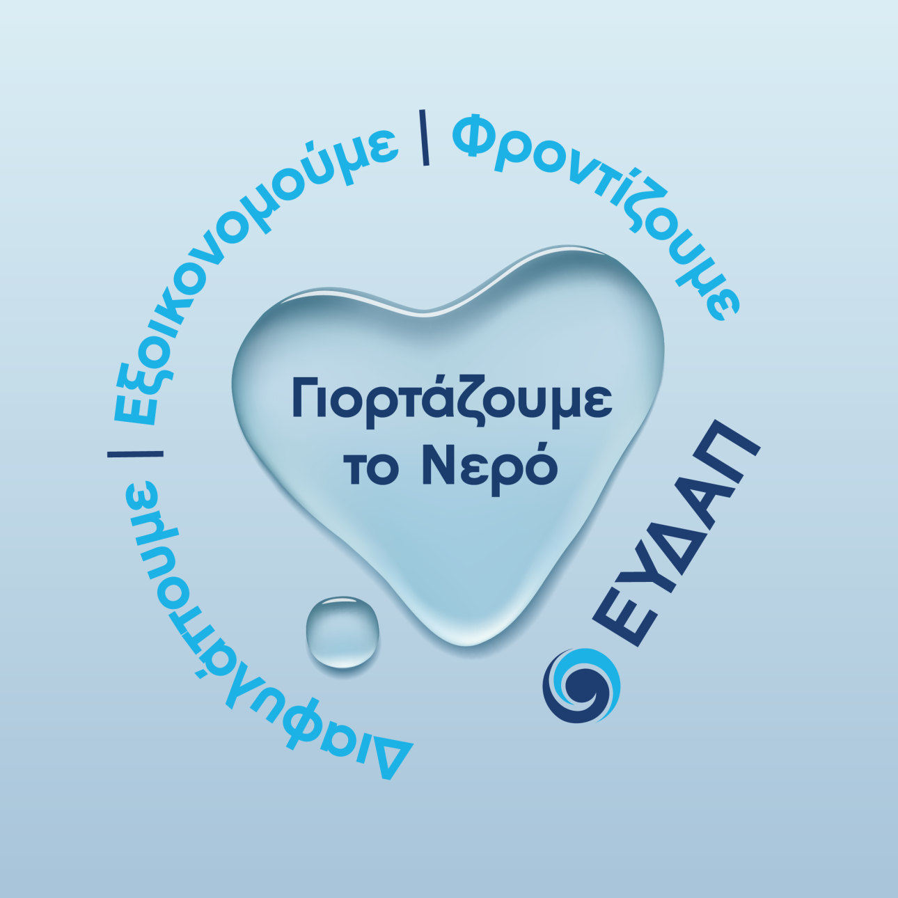 Απόλυτη προτεραιότητα και στόχος για την ΕΥΔΑΠ είναι το νερό να παραμείνει ένα αγαθό προσιτό σε όλους, διασφαλίζοντας την υψηλή του ποιότητα και την επαρκή του ποσότητα. Στο πλαίσιο αυτό, η Εταιρεία παραμένει πιστή στη δέσμευσή της να αντιμετωπίζει με συνέπεια και υπευθυνότητα όλες τις μεγάλες σύγχρονες προκλήσεις, ώστε να πίνουμε όλοι ένα από τα καλύτερα νερά στην Ευρώπη!