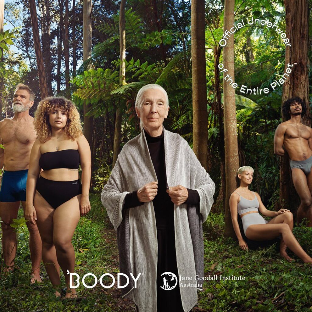Η Τζέιν Γκούντολ πρωτοστατεί στο διαφημιστικό κλιπ διάρκειας 30 δευτερολέπτων της αυστραλιανής εταιρείας εσωρούχων Boody, που άρχισε μόλις να προβάλλεται ενώ σύντομα οι γιγαντοαφίσες της καμπάνιας θα εμφανιστούν στο Σίδνεϊ και στη Μελβούρνη, γράφει στον Guardian η Αλιξ Γκόρμαν, ανταποκρίτρια της στήλης lifestyle της βρετανικής εφημερίδας στην Αυστραλία. (Δείτε το βίντεο)