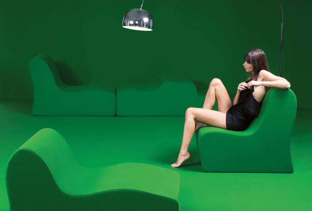 Ο σχεδιασμός των καναπέδων είναι ένα κλασικό παράδειγμα. «Οι αρθρωτοί καναπέδες υπήρχαν από τη δεκαετία του 1940, αλλά τώρα πλέον ήταν απλωμένοι και ηρωικοί, φτιαγμένοι για υπέροχους, φουτουριστικούς τρόπους ζωής», λέει ο Μάρτιν. Οι άκαμπτες φόρμες ήταν ντεμοντέ. Αντίθετα έγιναν της μόδας τα αισθησιακά, φυσικά σχήματα. Ηταν statement καναπέδες, που θα μπορούσαν να ανήκουν σε μια βίλα στη λίμνη Κόμο ή σε έναν διαστημικό σταθμό σε τροχιά γύρω από τη Σελήνη. Το να κάθεσαι στητός ήταν out, οι καναπέδες προσφέρονταν για ύπνο, κοσμικότητες και διασκέδαση.