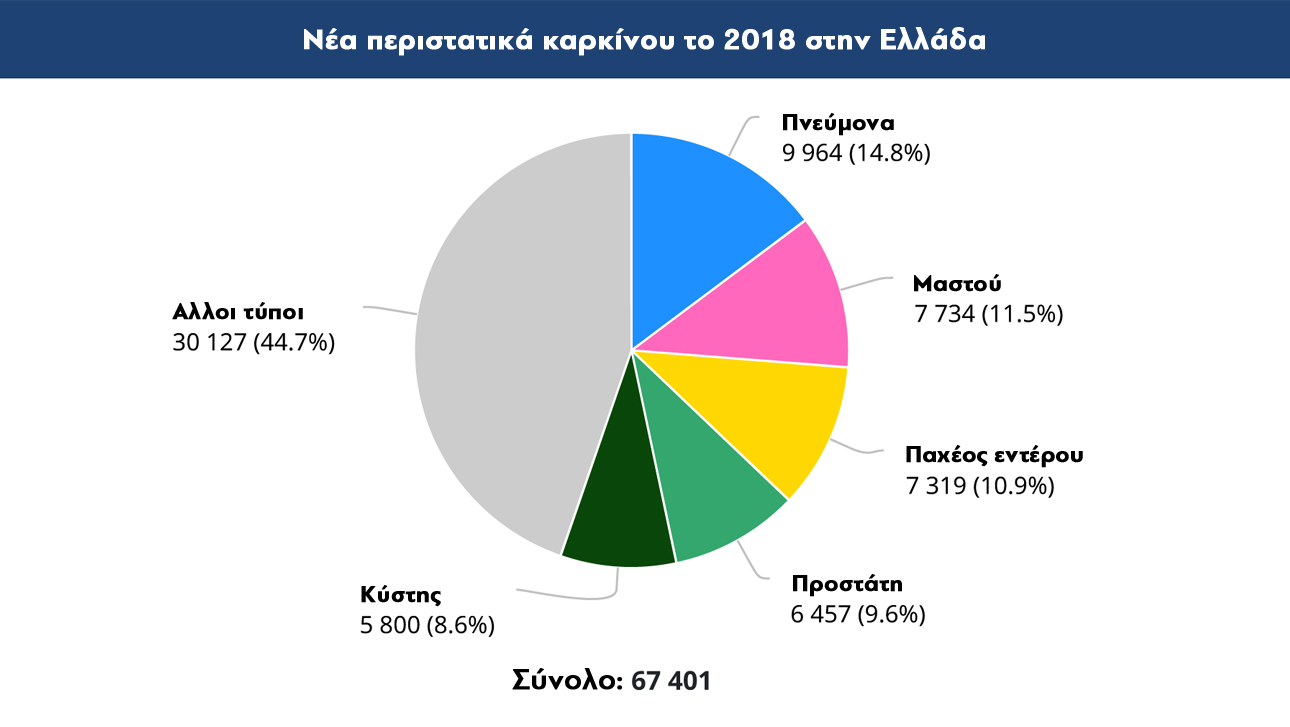 Σήμερα ο καρκίνος αποτελεί την πρώτη αιτία θανάτου στην Ελλάδα, με ποσοστό 27% γενικά και 38% στις ηλικίες κάτω των 65 ετών, αφήνοντας πίσω τα καρδιαγγειακά νοσήματα.