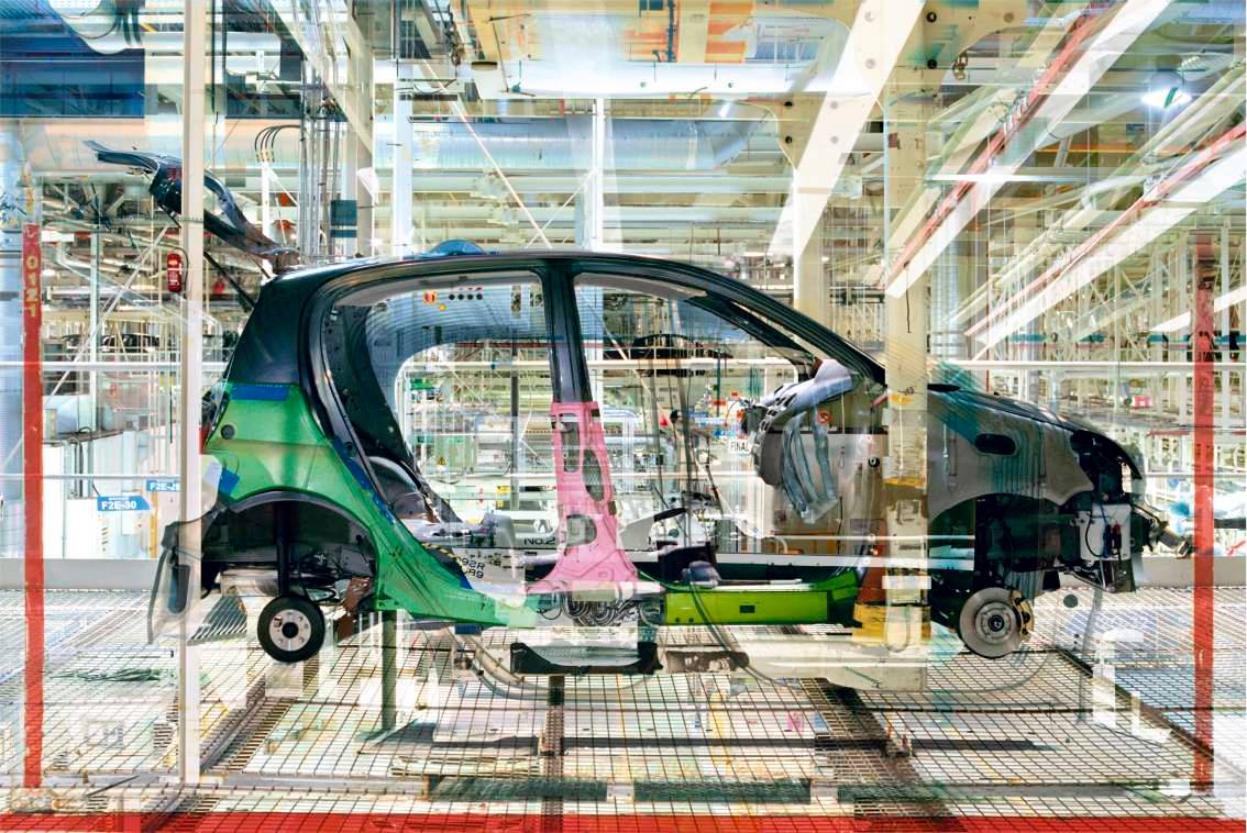 Σε μία από αυτές κατέγραψε μια γραμμή συναρμολόγησης στο εργοστάσιο River Rouge της Ford στο Ντιτρόιτ. Αυτή η διάσημη φωτογραφία δεν περιλαμβάνεται στην έκθεση Autophoto, υπάρχει, όμως, ένα άλλο πλάνο του Φρανκ από το εργοστάσιο της Ford.