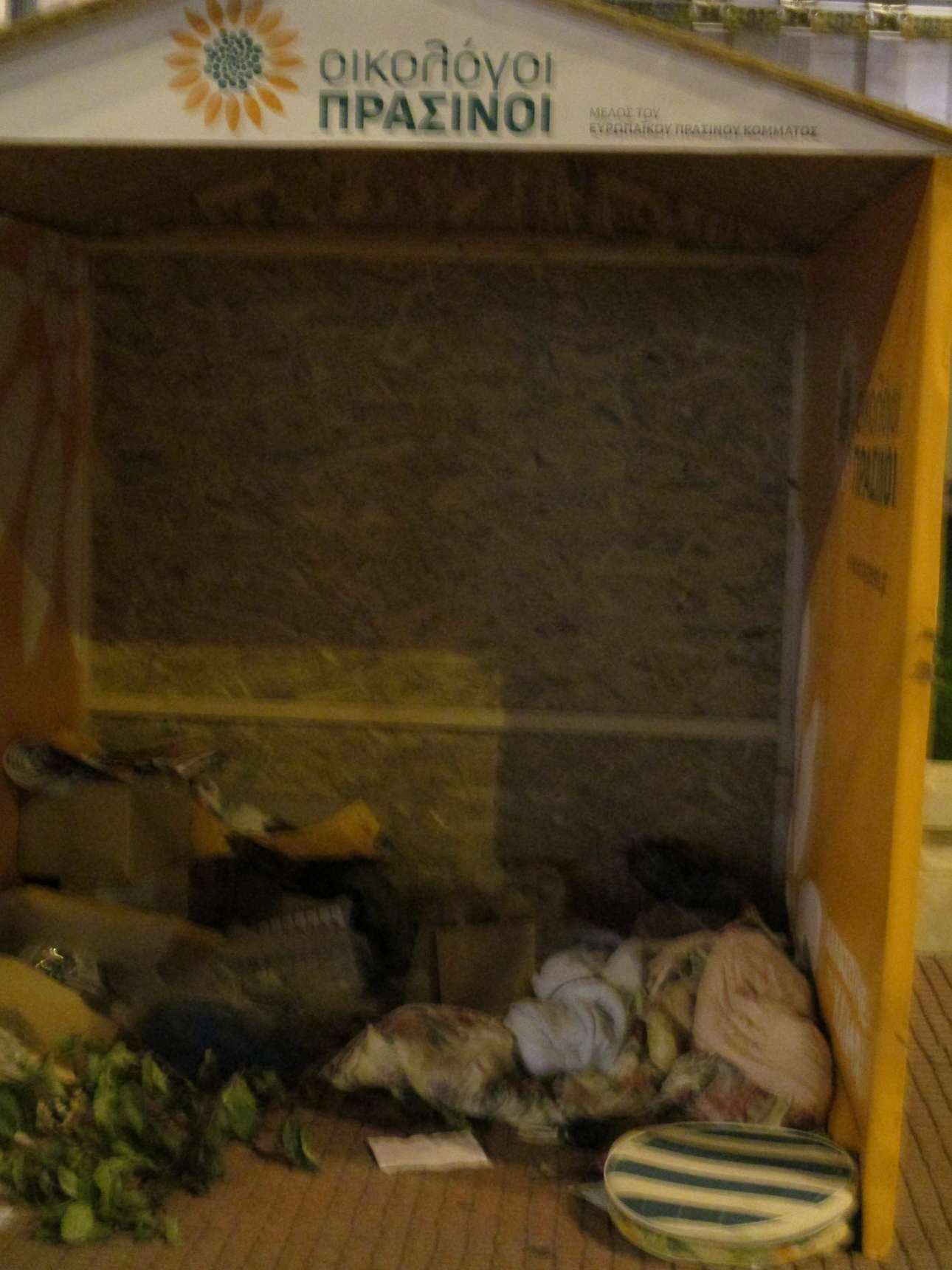 Κάτι τέτοιο μου θύμισε και το ερημωμένο πλέον εκλογικό περίπτερο που εγκατέλειψαν μόνο και αβοήθητο οι Οικολόγοι Πράσινοι επί της Πανεπιστημίου. Περνώντας από εκεί την περασμένη Τρίτη, μιάμιση μόλις ημέρα μετά τις εκλογές, καθόλου πράσινο και καθόλου οικολογικό δεν ήταν. Σκουπίδια πάσης φύσεως, από ξεραμένα λουλούδια που μάλλον είχαν σταλεί για «καλή τύχη» στις εκλογές, μέχρι διάφορα άλλα αγνώστης ταυτότητας παραπεταμένα αντικείμενα. Καμία οικολογική συνείδηση όταν σβήσουν τα φώτα και καταμετρηθούν οι λιγοστές ψήφοι.