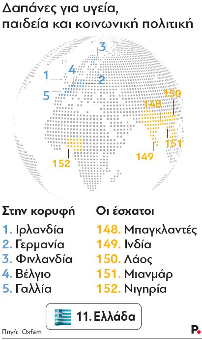 Πρόσβαση στην εκπαίδευση, φορολογικό σύστημα, υγεία, κοινωνική πολιτική, εργασιακά δικαιώματα είναι μερικές από τις παραμέτρους που λαμβάνουν υπόψη τους οι ερευνητές του «Oxfam and Development Finance International» για να κατατάξουν τις χώρες που πλανήτη ανάλογα με τη δέσμευσή τους και τις προσπάθειες που καταβάλλουν για να καταπολεμήσουν την ανισότητα.