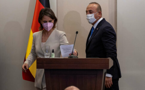Η Μπέρμποκ, ως νέα επικεφαλής της γερμανικής διπλωματίας, όχι μόνο αναφέρθηκε στις τουρκικές προκλήσεις στο Αιγαίο αλλά έκανε και τον συνομιλητή της να χάσει την ψυχραιμία του —που, βέβαια, δεν είναι και το ατού του, όπως επισημαίνουν παρατηρητές.