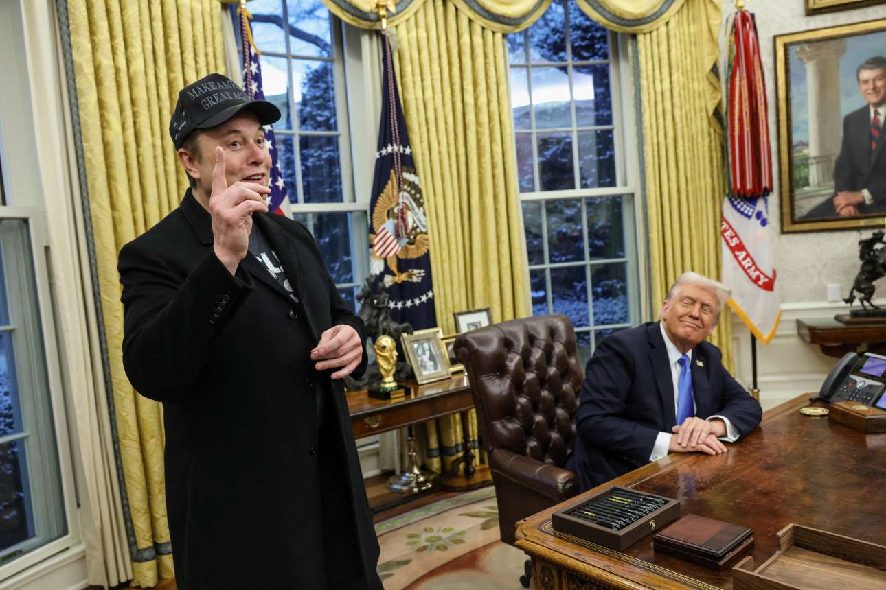 Αυτό, ωστόσο, σε καμία περίπτωση δεν αλλάζει το γεγονός ότι ο αμετροεπής μεγιστάνας της τεχνολογίας λύνει και δένει στην κυβέρνηση, δίχως μάλιστα να υποχρεούται να λογοδοτεί σε κανέναν: δεν έχει απαντήσει σε ερωτήσεις δημοσιογράφων όσον αφορά τα πεπραγμένα του ως επιχειρηματίας, δεν έχει εξεταστεί από μέλη του Κογκρέσου, ενώ το επιτελείο του έχει ήδη αρχίσει να αποπέμπει αξιωματούχους καριέρας από την Ουάσινγκτον. Την Τρίτη δεν είχε πρόβλημα να μπει στο Οβάλ Γραφείο, μαζί με το παιδί του και να σταθεί επιβλητικά σαν… μπάστακας, πάνω από τον Τραμπ, σε μια σειρά στιγμιοτύπων που θα μπορούσαν να εικονογραφούν τον βαθμό επιρροής του στον πυρήνα πλέον της αμερικανικής κυβέρνησης.