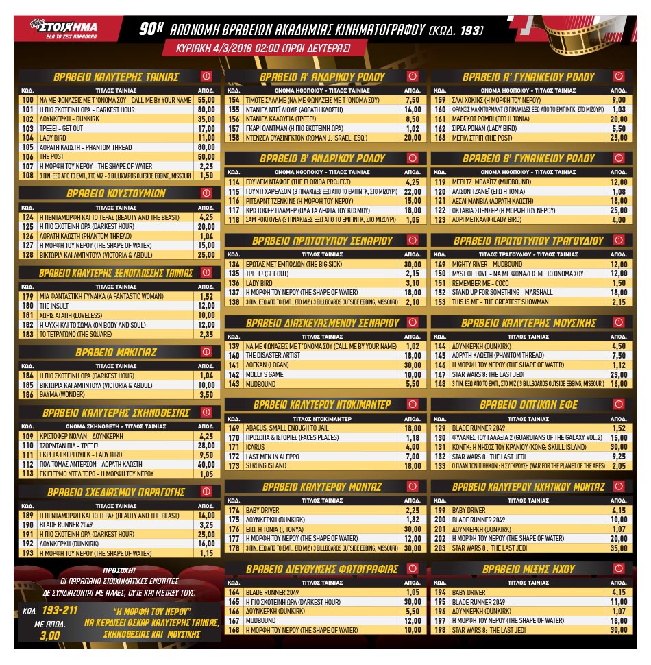 Το Πάμε Στοίχημα του ΟΠΑΠ προσφέρει και εφέτος πολλά ειδικά στοιχήματα για την 90η απονομή των βραβείων της Αμερικανικής Ακαδημίας Κινηματογράφου.