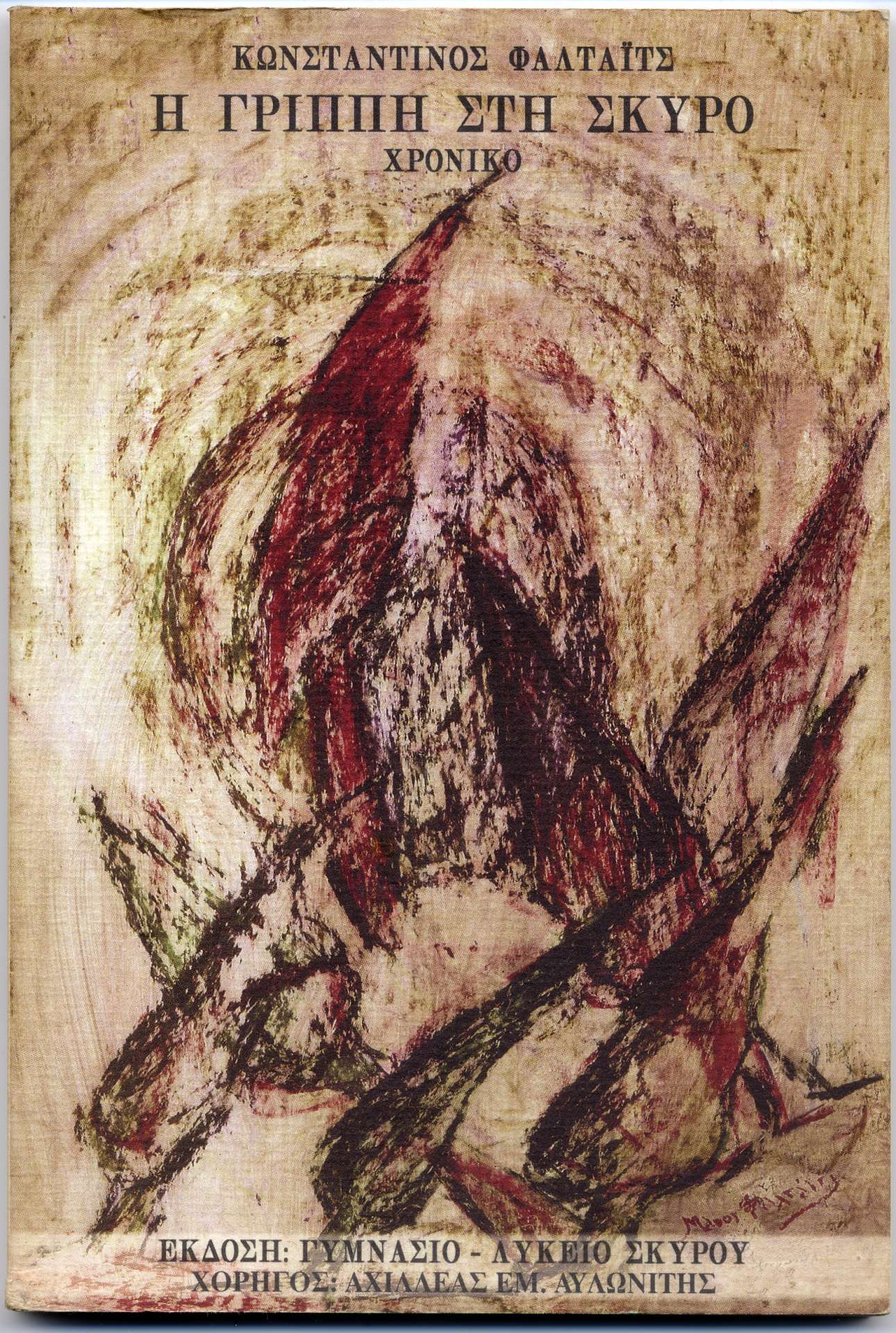 Ήταν Οκτώβρης του 1918 και η «Ισπανική Γρίπη», που αφάνισε δεκάδες εκατομμυρίων ανθρώπων σ΄όλον τον κόσμο ,είχε ήδη φτάσει πρώτα στο Λιμάνι και, αμέσως μετά, και στη Χώρα της Σκύρου. Η αρρώστια χτύπησε με ιδιαίτερα τρομακτική σφοδρότητα, το νησί αυτό. Ο Κωνσταντίνος Φαλτάιτς – νεαρός δημοσιογράφος τότε – έγραψε και δημοσίευσε τον επόμενο χρόνο το βιβλίο του για τη «Γρίππη στη Σκύρο». Το βιβλίο του επανεκδόθηκε το 2006.