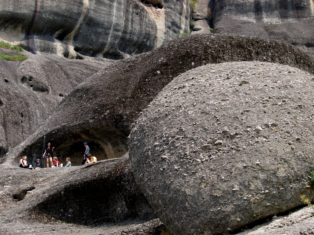 Ανεβαίνοντας, με μεγάλη οικειότητα με τον βράχο που σου προσφέρει μικρές σπηλιές για να ξαποστάσεις, απολαμβάνεις απέναντι το σκηνικό των Μετεώρων. Ο κάθε βράχος είναι ξεχωριστός, ιδιοκατασκευή της φύσης αλλά και των ανθρώπων.