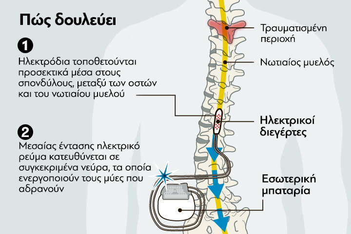 Μάλιστα, όπως φάνηκε μετά την εφαρμογή της πειραματικής μεθόδου, το ηλεκτρικό ρεύμα δεν δρούσε απλώς εκείνη τη στιγμή, αλλά βοηθούσε και μετά την παύση διοχέτευσης ρεύματος στην αναζωογόνηση των αδρανοποιημένων κυκλωμάτων που οδηγούν σε καταστάσεις παράλυσης άκρων.