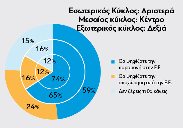 Το ποσοστό σε πανευρωπαϊκό επίπεδο, συμπεριλαμβανομένης της Βρετανίας, που θα ψήφιζε την έξοδο είναι 17%. Αν δε αφαιρέσουμε το υψηλό αρνητικό ποσοστό των Βρετανών (34% που είναι αποφασισμένοι να ξαναψηφίσουν την έξοδο) το ποσοστό αυτό πέφτει στο 14%