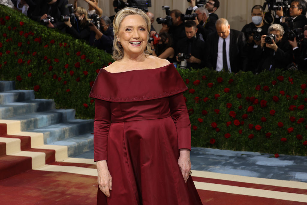 Η Χίλαρι Κλίντον επέλεξε μια βυσσινί, πολυτελή τουαλέτα που έφερε -σε σημείο όχι ιδιαίτερα ορατό είναι η αλήθεια- τα ονόματα γυναικών που διακρίθηκαν για το θάρρος τους σε δύσκολους καιρούς.