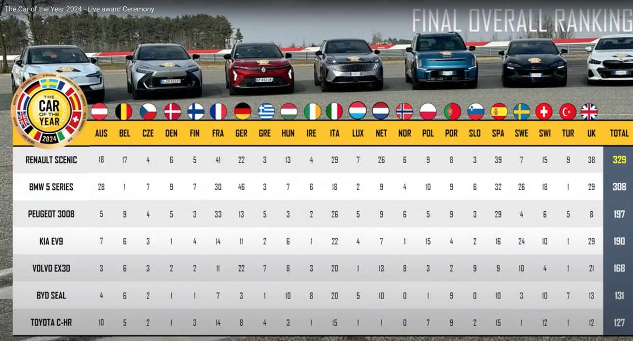 Ωστόσο η εξέλιξη της ψηφοφορίας -βάλτε μέσα και μια λογική τύπου Eurovision όπου οι εθνικές ψήφοι καθορίζουν το κάτι τις τους- έδειξε πως το «πρωτάθλημα» βασικά θα παιζόταν ανάμεσα σε δύο: τη BMW 5 Series και το Renault Scenic.